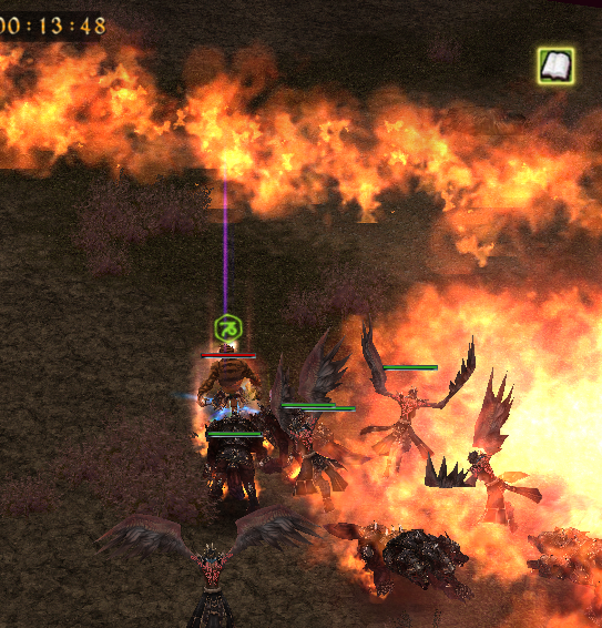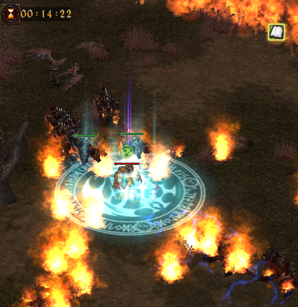 After the Devil's Land battle begins, characters will be teleported to random locations on the map. A large group of monsters will appear periodically, surrounded by a fire ring. The monsters don't deal much damage, but you must not touch the fire ring, or you will be burned to death. The fire ring will shrink inward periodically.