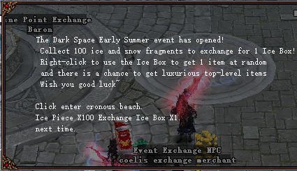 5. After the Early Summer Event opens, an event exchange NPC will appear at cronous Castle X 162 Y 202