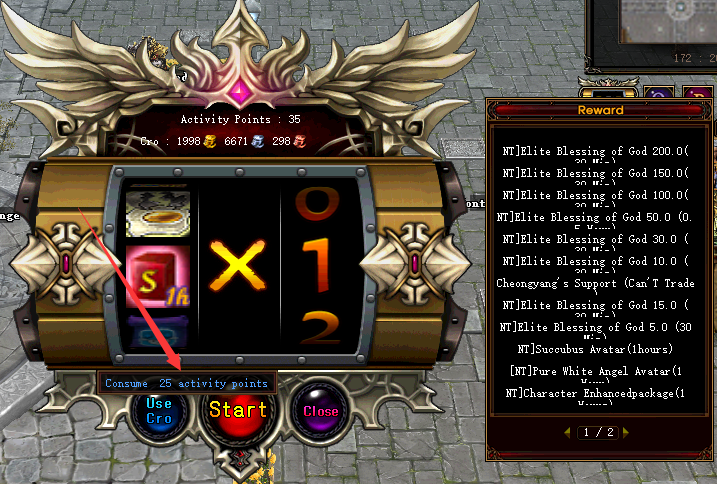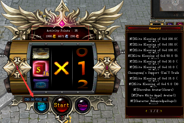 Also: Clicking [Use CRO] and then clicking Start will deduct 500 Silver Coins and 25 Activity Points, and the spin will begin. Your chances of receiving a high-level item will increase fivefold.